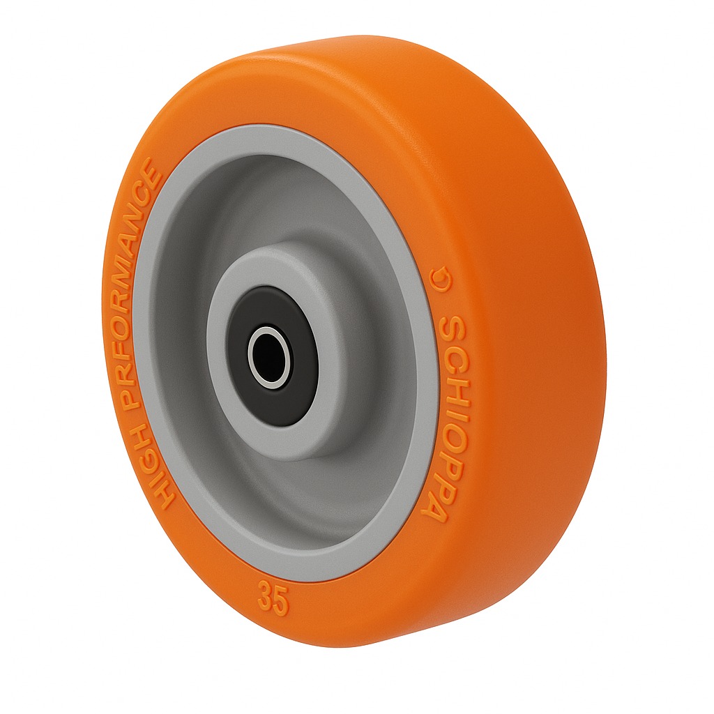 Roda UP – Poliuretano Termoplástico. Dureza: 90 Shore A. (-20ºC a +70ºC)