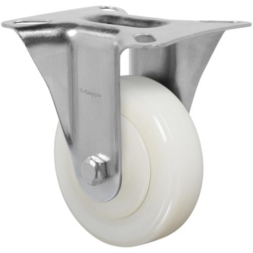 Produzidas com revestimento e núcleo em nylon poliamida 6.0 de alta qualidade. São leves e possuem ótima resistência mecânica, rodam com muita facilidade exigindo menor esforço para manobras e movimentação. Ideais para aplicações em ambientes úmidos, são resistente as graxas, óleos, sais e alguns tipos de ácidos. Fabricadas com material reciclável. A velocidade de trabalho indicada é até 4 km/h.