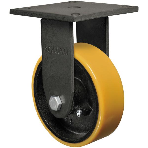 Produzidas com revestimento em poliuretano moldado e núcleo em ferro fundido cinzento. Ideais para aplicações nos mais diversos tipos de superfícies e ambientes. Suportam altas cargas, protegem o piso, necessitam de menor esforço para movimentação, produzem baixo nível de ruídos no deslocamento e têm excelente durabilidade. Possuem excelente resistência