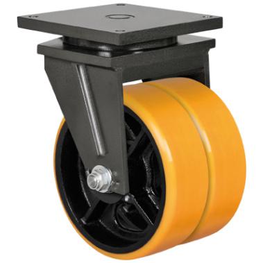 Produzidas com revestimento em poliuretano moldado e núcleo em ferro fundido cinzento. Ideais para aplicações nos mais diversos tipos de superfícies e ambientes. Suportam altas cargas, protegem o piso, necessitam de menor esforço para movimentação, produzem baixo nível de ruídos no deslocamento e têm excelente durabilidade. Possuem excelente resistência
