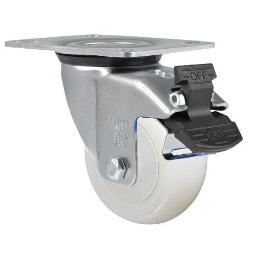 Produzidas com revestimento e núcleo em nylon poliamida 6.0 de alta qualidade. São leves e possuem ótima resistência mecânica, rodam com muita facilidade exigindo menor esforço para manobras e movimentação. Ideais para aplicações em ambientes úmidos, são resistente as graxas, óleos, sais e alguns tipos de ácidos. Fabricadas com material reciclável. A velocidade de trabalho indicada é até 4 km/h.
