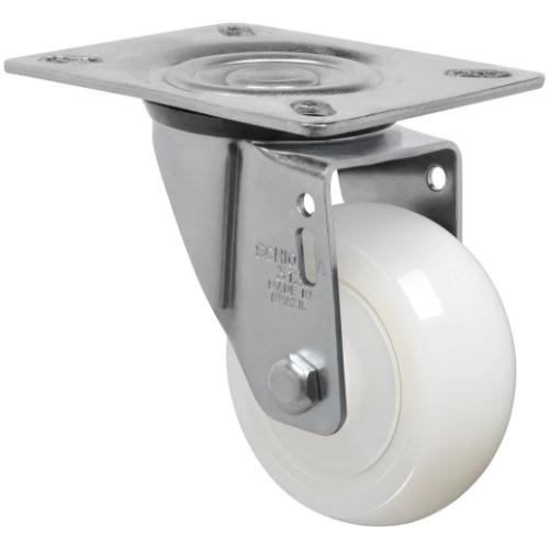 Produzidas com revestimento e núcleo em nylon poliamida 6.0 de alta qualidade. São leves e possuem ótima resistência mecânica, rodam com muita facilidade exigindo menor esforço para manobras e movimentação. Ideais para aplicações em ambientes úmidos, são resistente as graxas, óleos, sais e alguns tipos de ácidos. Fabricadas com material reciclável. A velocidade de trabalho indicada é até 4 km/h.