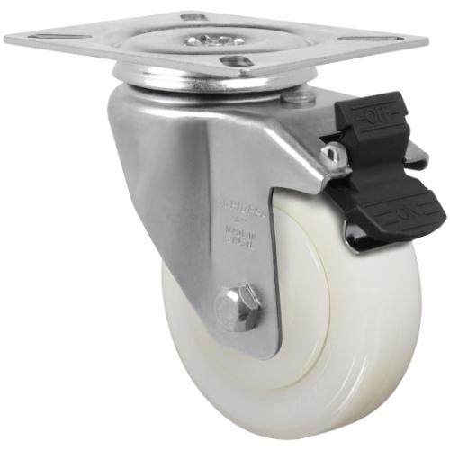 Produzidas com revestimento e núcleo em nylon poliamida 6.0 de alta qualidade. São leves e possuem ótima resistência mecânica, rodam com muita facilidade exigindo menor esforço para manobras e movimentação. Ideais para aplicações em ambientes úmidos, são resistente as graxas, óleos, sais e alguns tipos de ácidos. Fabricadas com material reciclável. A velocidade de trabalho indicada é até 4 km/h.