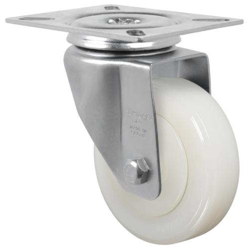 Produzidas com revestimento e núcleo em nylon poliamida 6.0 de alta qualidade. São leves e possuem ótima resistência mecânica, rodam com muita facilidade exigindo menor esforço para manobras e movimentação. Ideais para aplicações em ambientes úmidos, são resistente as graxas, óleos, sais e alguns tipos de ácidos. Fabricadas com material reciclável. A velocidade de trabalho indicada é até 4 km/h.
