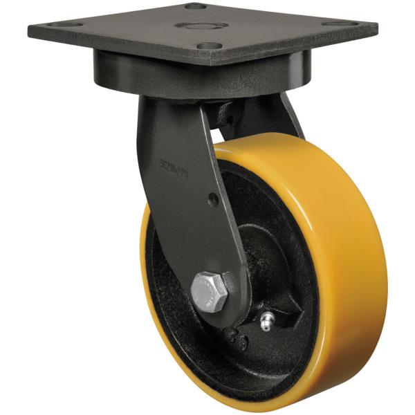 Produzidas com revestimento em poliuretano moldado e núcleo em ferro fundido cinzento. Ideais para aplicações nos mais diversos tipos de superfícies e ambientes. Suportam altas cargas, protegem o piso, necessitam de menor esforço para movimentação, produzem baixo nível de ruídos no deslocamento e têm excelente durabilidade. Possuem excelente resistência a abrasão, impactos, intempéries e produtos químicos como graxas, óleos, sais e solventes. Podem ser utilizadas a uma velocidade de até 20km/h quando montadas com rolamento de esferas.