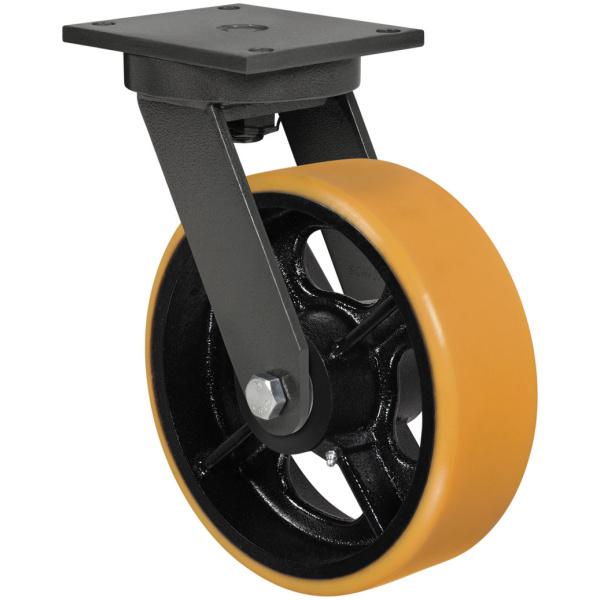 Produzidas com revestimento em poliuretano moldado e núcleo em ferro fundido cinzento. Ideais para aplicações nos mais diversos tipos de superfícies e ambientes. Suportam altas cargas, protegem o piso, necessitam de menor esforço para movimentação, produzem baixo nível de ruídos no deslocamento e excelente durabilidade. Possuem excelente resistência a abrasão, impactos, intempéries e produtos químicos como graxas, óleos, sais e solventes. Podem ser utilizadas a uma velocidade de até 20km/h quando montadas com rolamento de esferas.