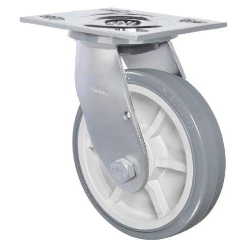 Produzidas com revestimento em composto termoplástico com PVC e núcleo em polipropileno copolímero recicláveis. Proporcionam rodagem macia e silenciosa, ótima proteção ao piso, excelente resistência química, boa resistência ao desgaste e aos impactos, resultando em ótima relação custo benefício. A velocidade de trabalho indicada é até 4km/h.