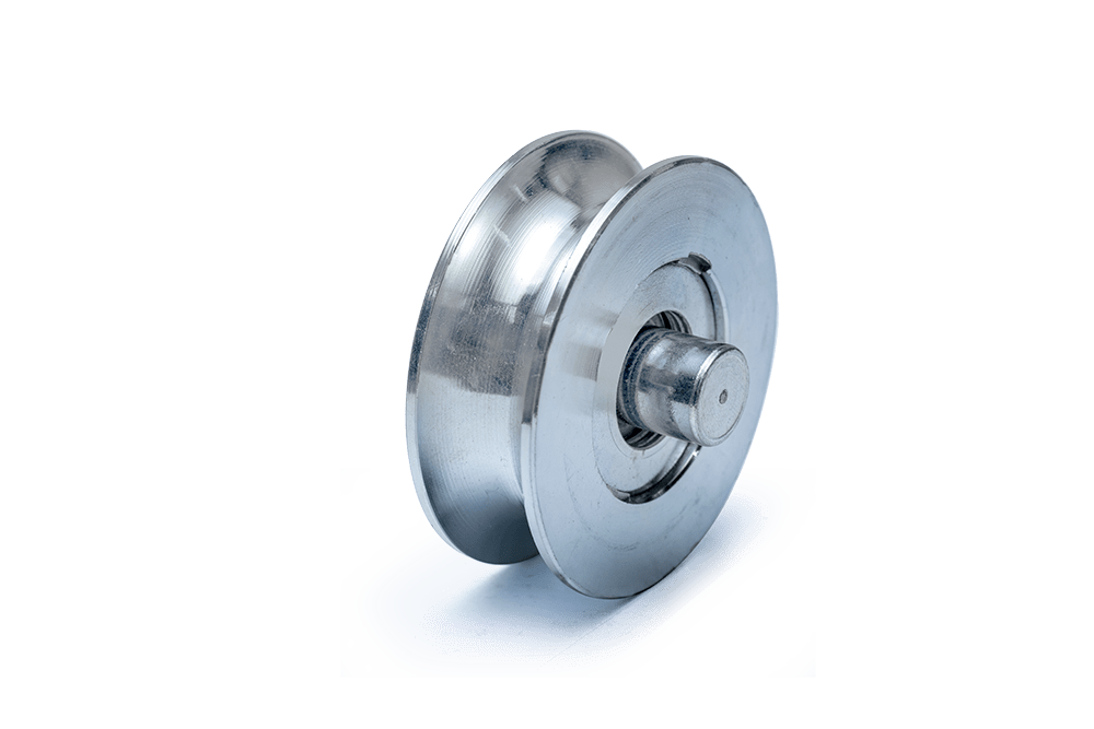 ROLDANA CANAL (REDONDO) EM AÇO 1020 C/ EIXO E 2 ROLAMENTOS P/ TUBO PRETO OU FERRO REDONDO DE 1”