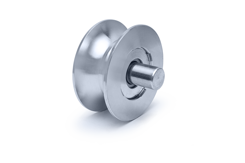 ROLDANA CANAL (REDONDO) EM AÇO 1020 COM EIXO E 1 ROLAMENTO P/ TUBO GALV. 3/4″
