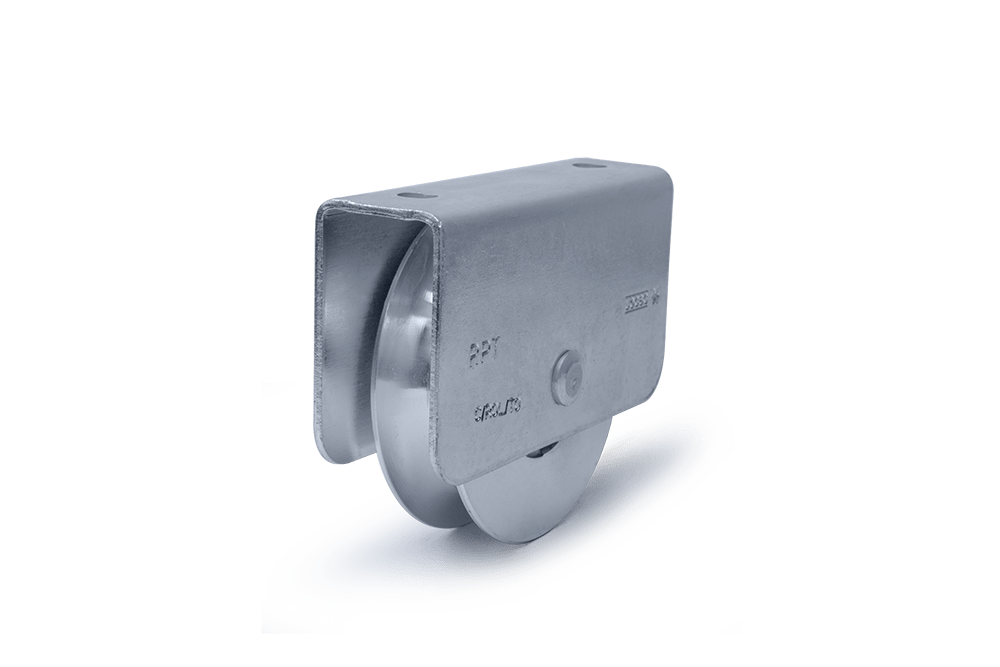 ROLDANA CANAL (V) EM AÇO 1020 COM SUPORTE ABERTO E 1 ROLAMENTO