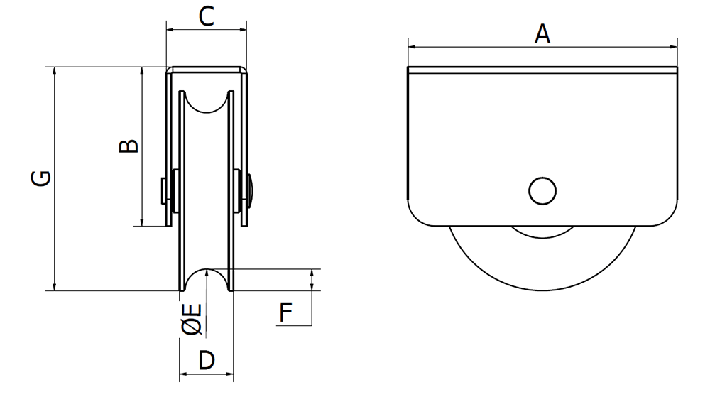 ROLDANA CANAL (V) EM AÇO 1020 COM SUPORTE ABERTO E 1 ROLAMENTO