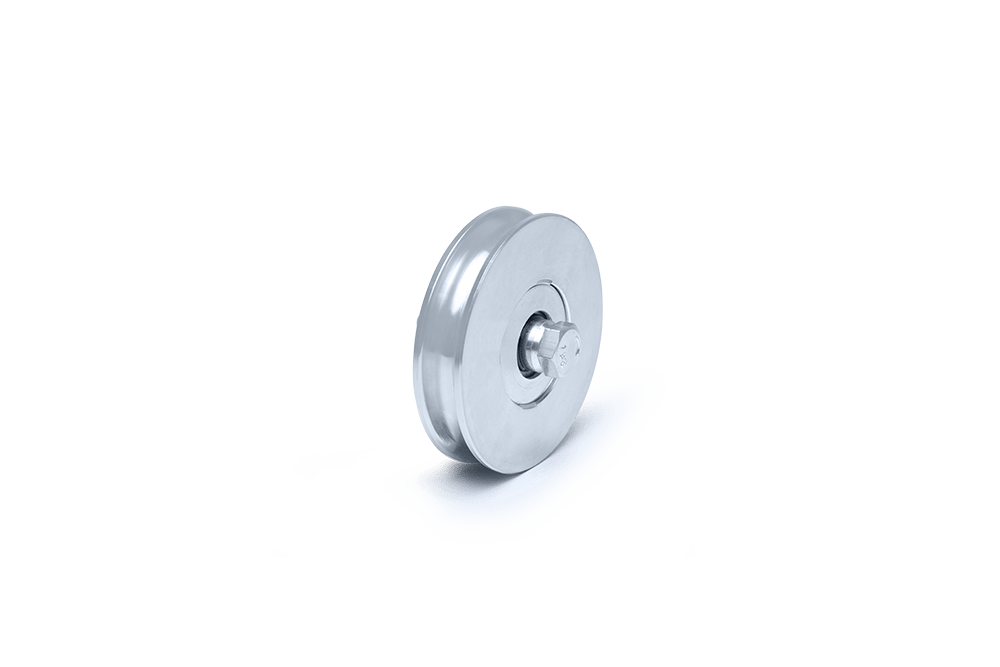 ROLDANA CANAL (V) EM AÇO 1020 COM SUPORTE ABERTO E 1 ROLAMENTO