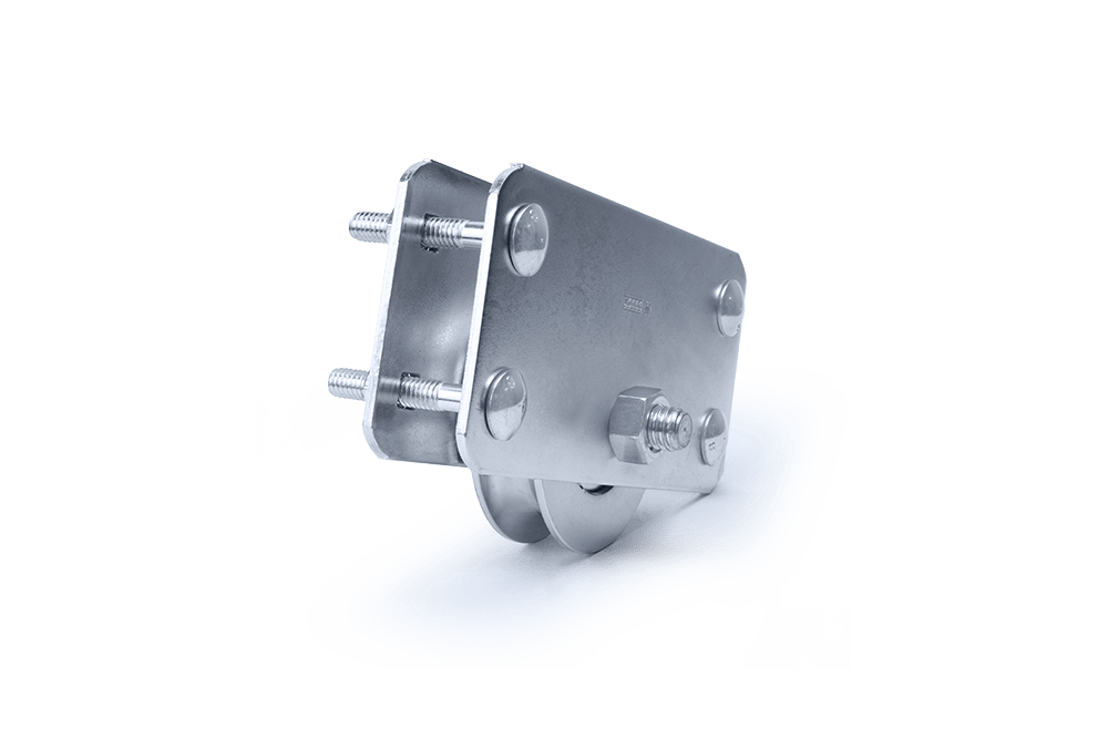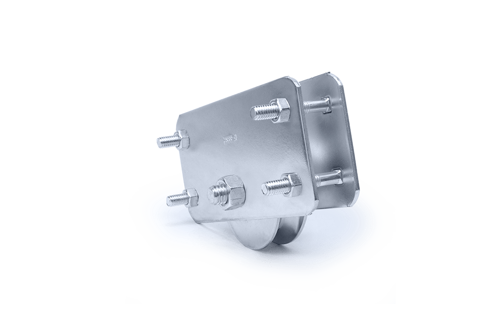 ROLDANA CANAL (V) EM AÇO 1020 COM 1 ROLAMENTO E SUPORTE LATERAL COM ACABAMENTO ZINCADO