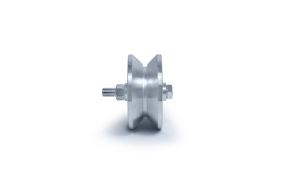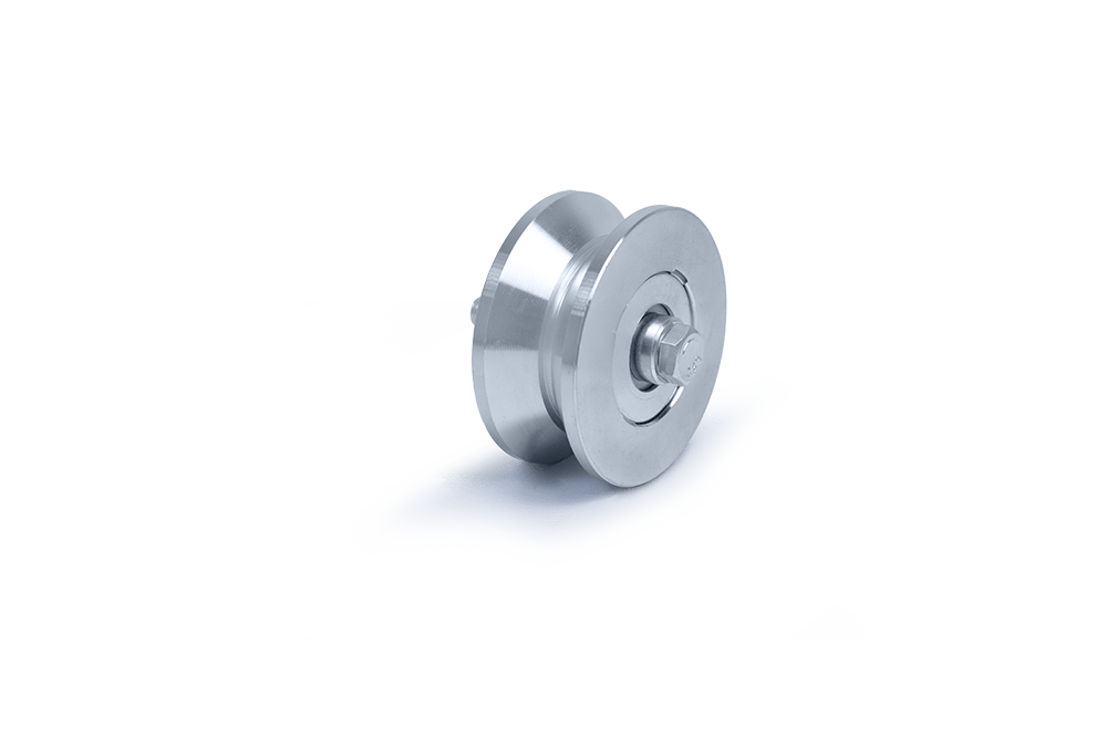 ROLDANA CANAL (V) EM AÇO 1020 COM EIXO FURADO E 2 ROLAMENTOS