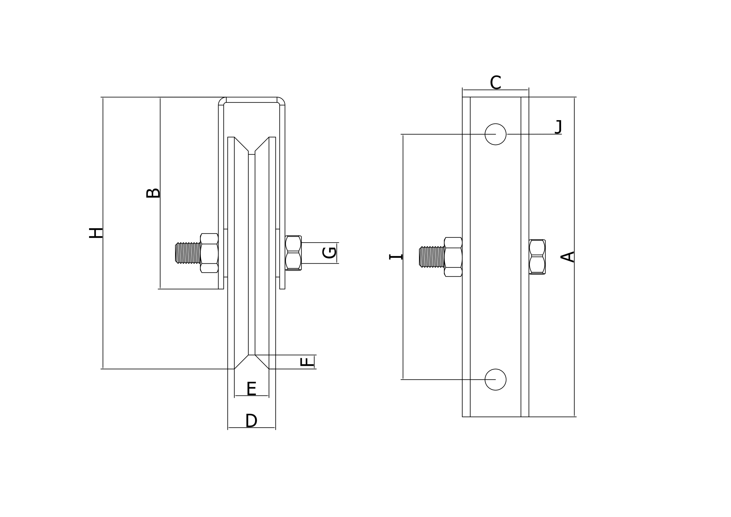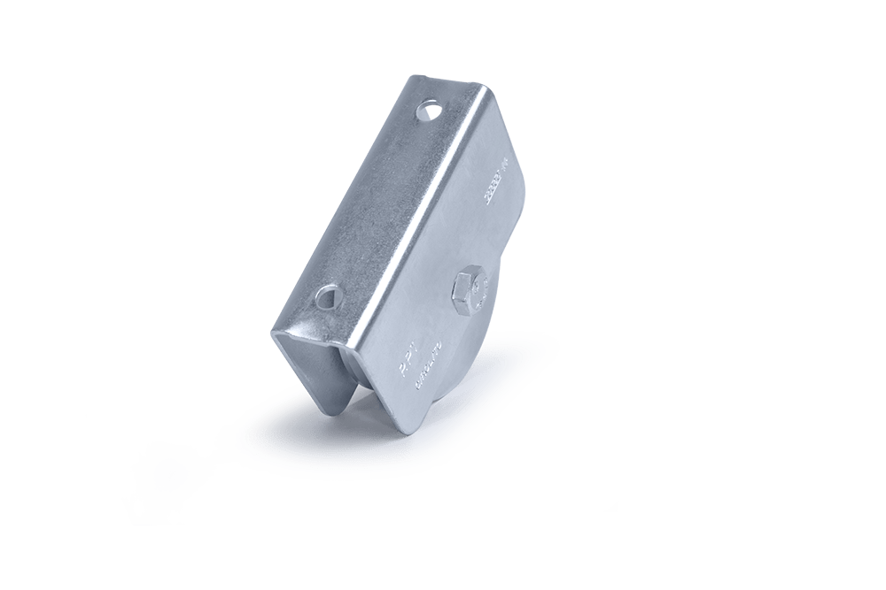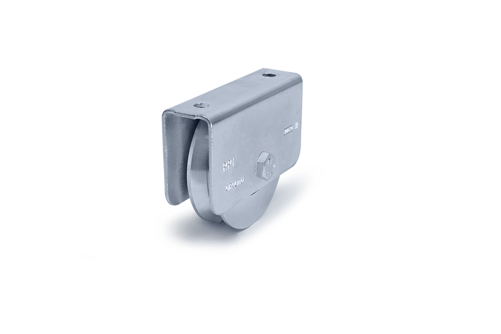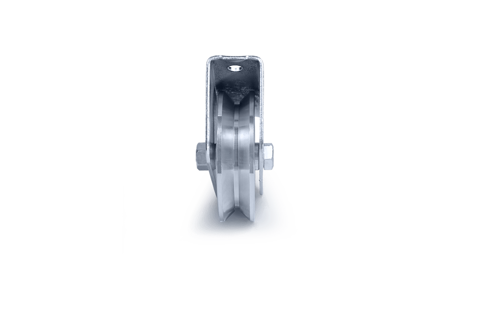 ROLDANA CANAL (V) EM AÇO 1020 COM SUPORTE E 1 ROLAMENTO C/ PARAFUSO