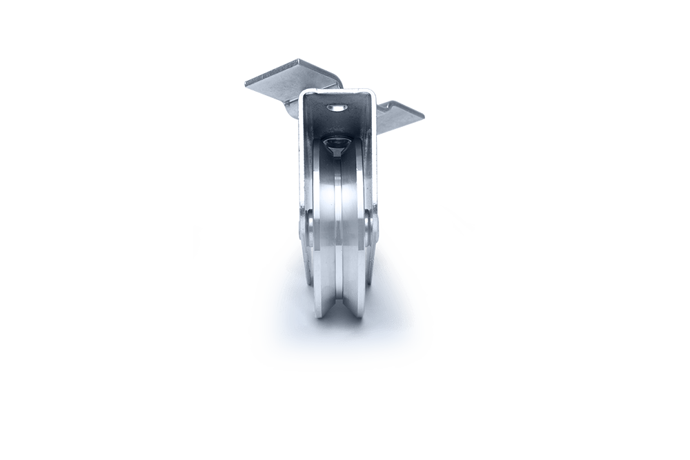 ROLDANA CANAL (V) EM AÇO 1020 COM SUPORTE GIRATÓRIO E 1 ROLAMENTO