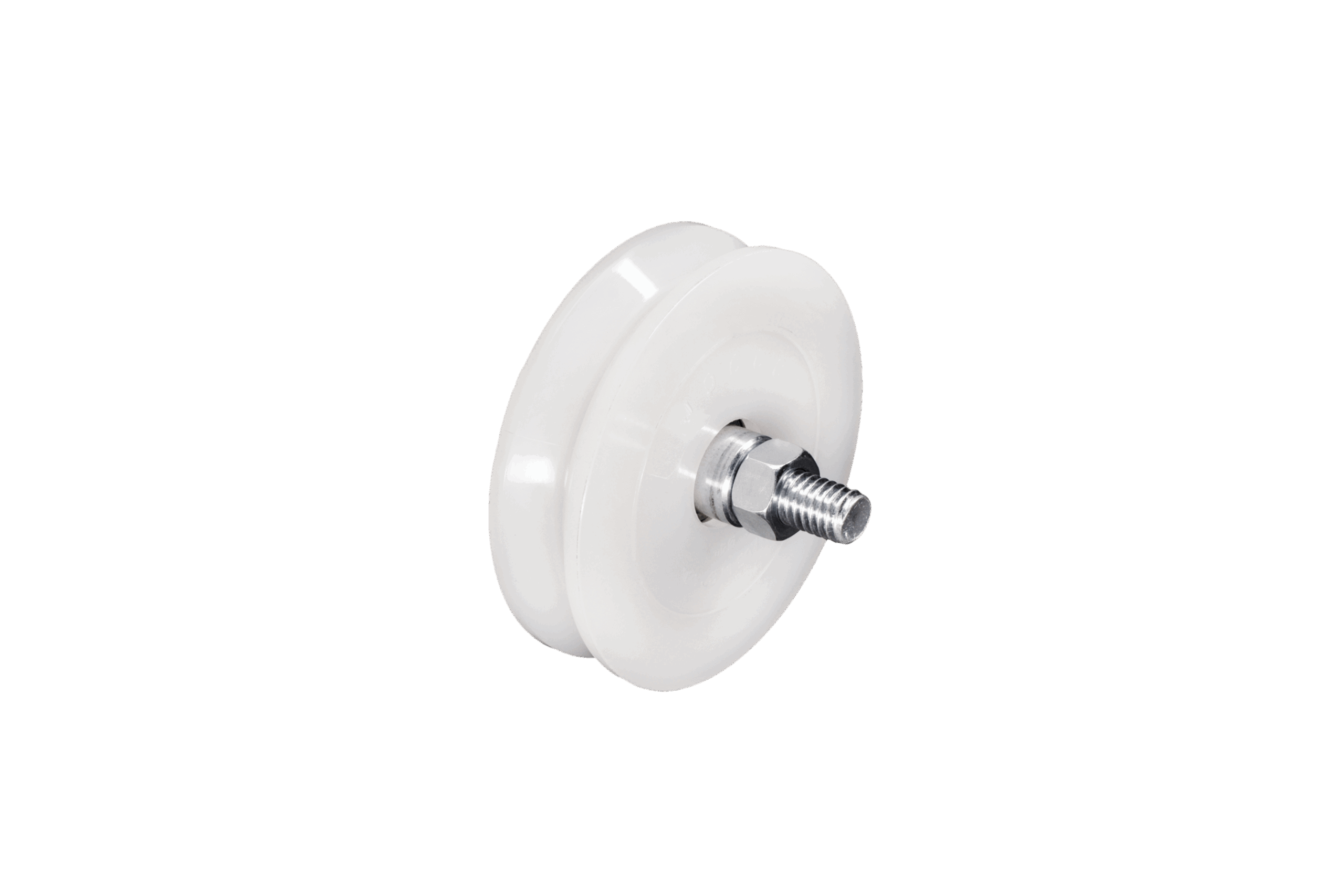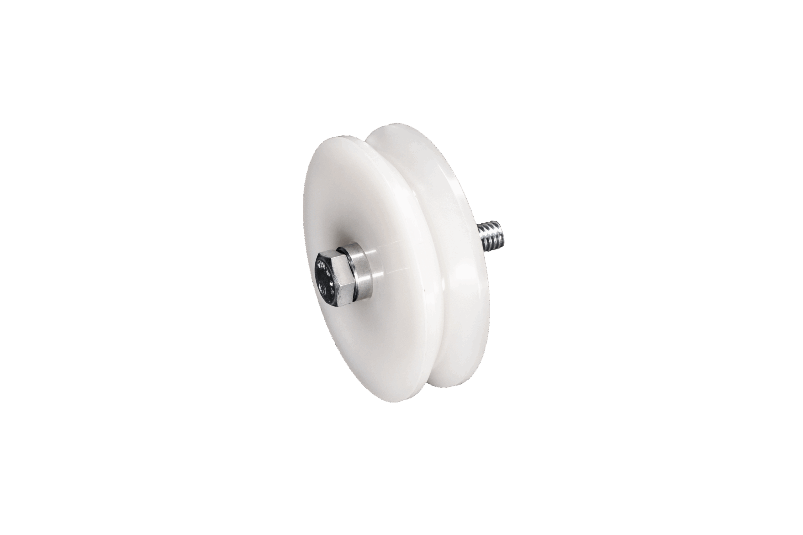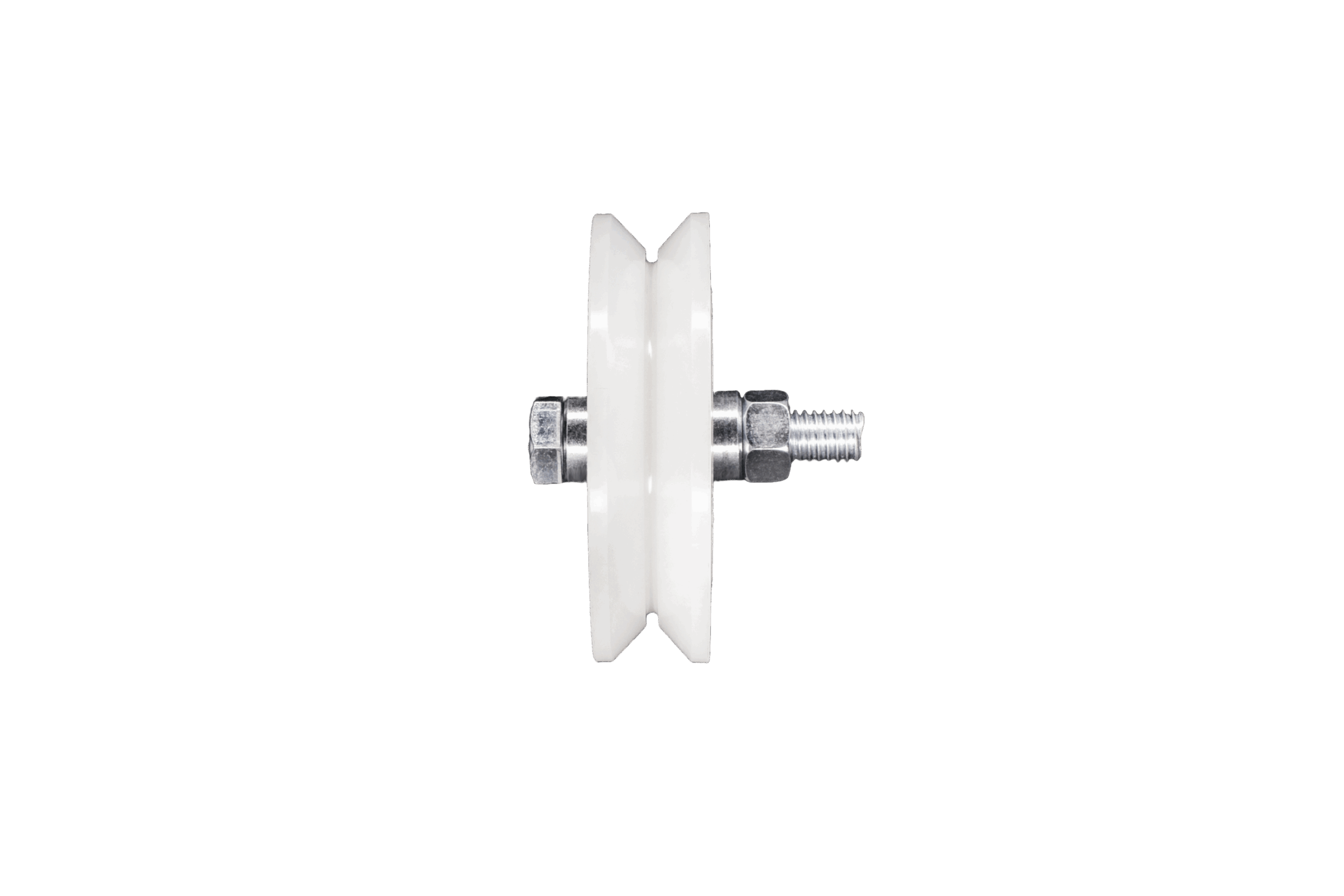 ROLDANA CANAL (V) EM NYLON COM EIXO FURADO E ROLAMENTO