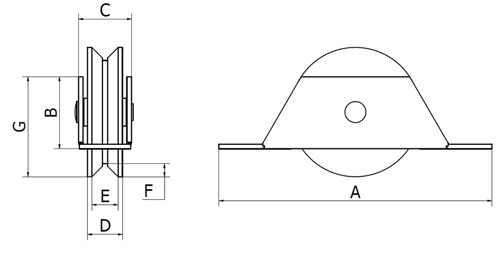 ROLDANA CANAL (V) EM AÇO 1020 COM 1 ROLAMENTO E SUPORTE LATERAL COM ACABAMENTO ZINCADO