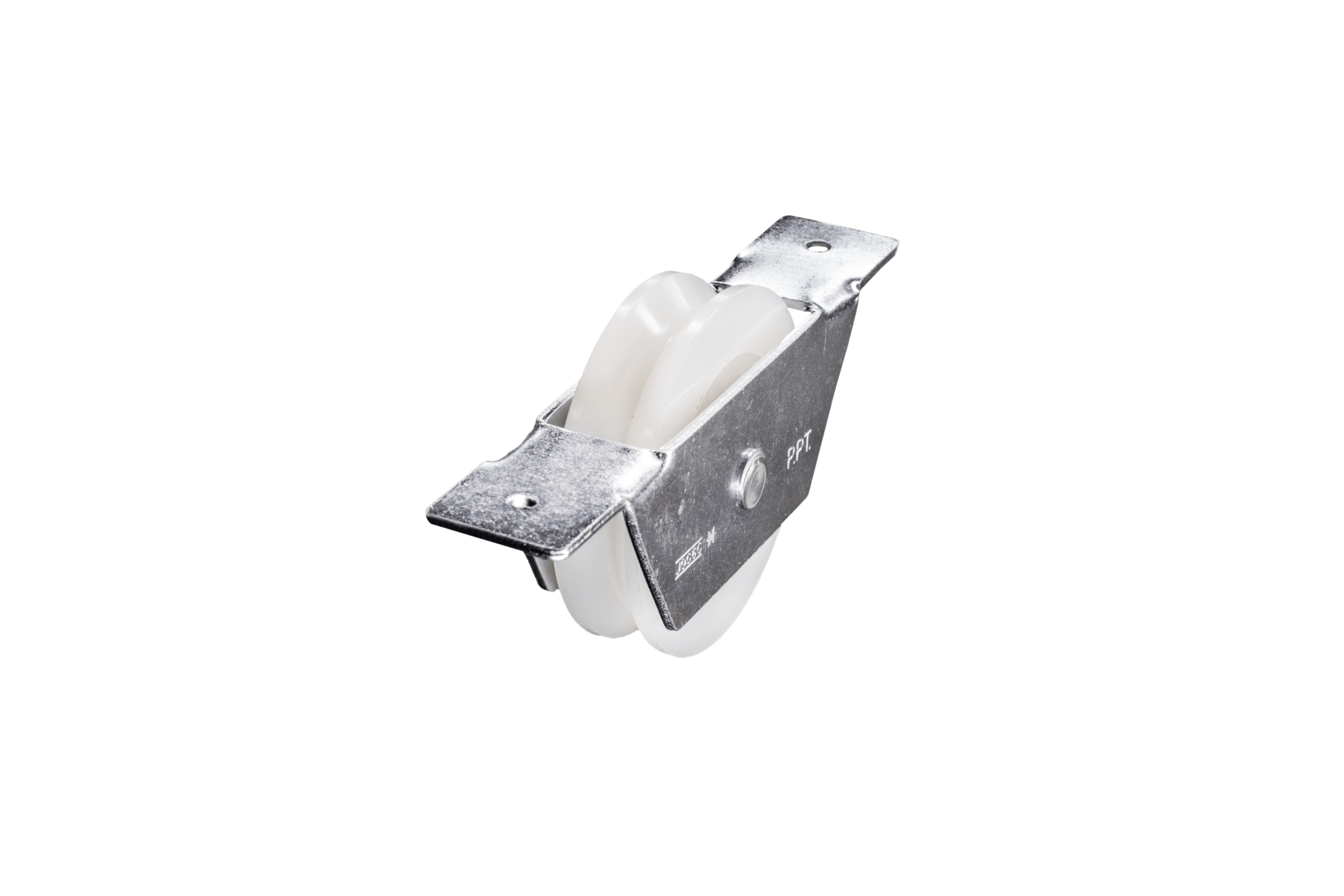 ROLDANA CANAL (V) EM NYLON COM SUPORTE ABERTO E 1 ROLAMENTO